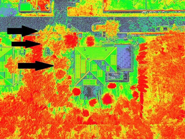 Wykorzystując badanie drzew dronem multispekralnym można w łatwy i szybki sposób określić współczynnik wegetacji lub zawartość chlorofilu, co nierzadko jest jednym z głównych czynników świadczącym o kondycji zdrowotnej rośliny.